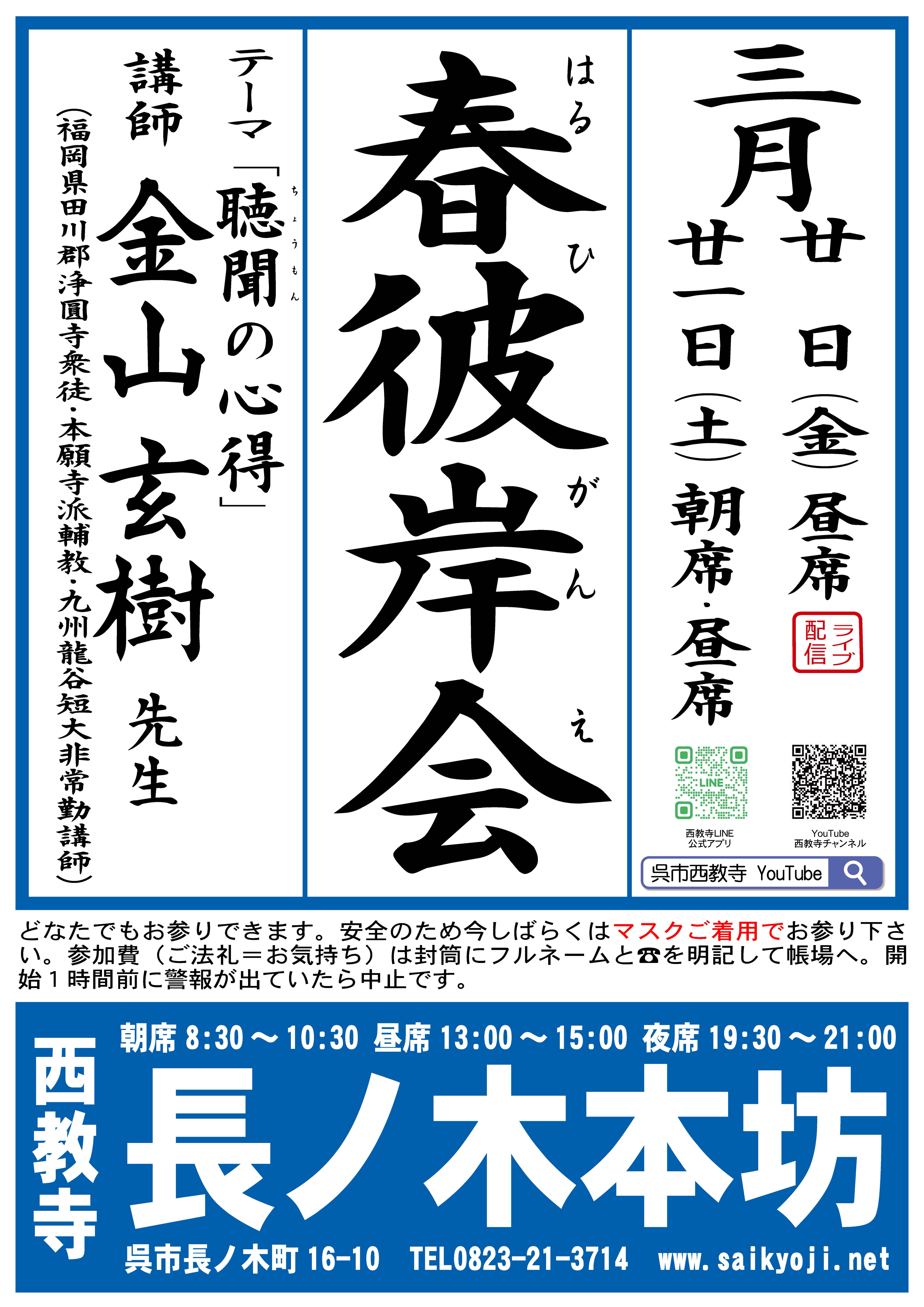 長ノ木本坊 春彼岸会 金山玄樹先生 |
