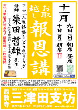 | 10月・月のことば | 長ノ木本坊 秋の永代経・ペラオペラ 釈徹宗先生・ほか | 三津田支坊 お取越し報恩講 築田哲雄先生 | 蔵本通支坊 お取越し報恩講 武田達城先生 |