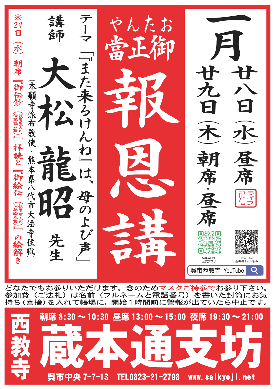 蔵本通支坊 ご正当報恩講 大松龍昭先生 |