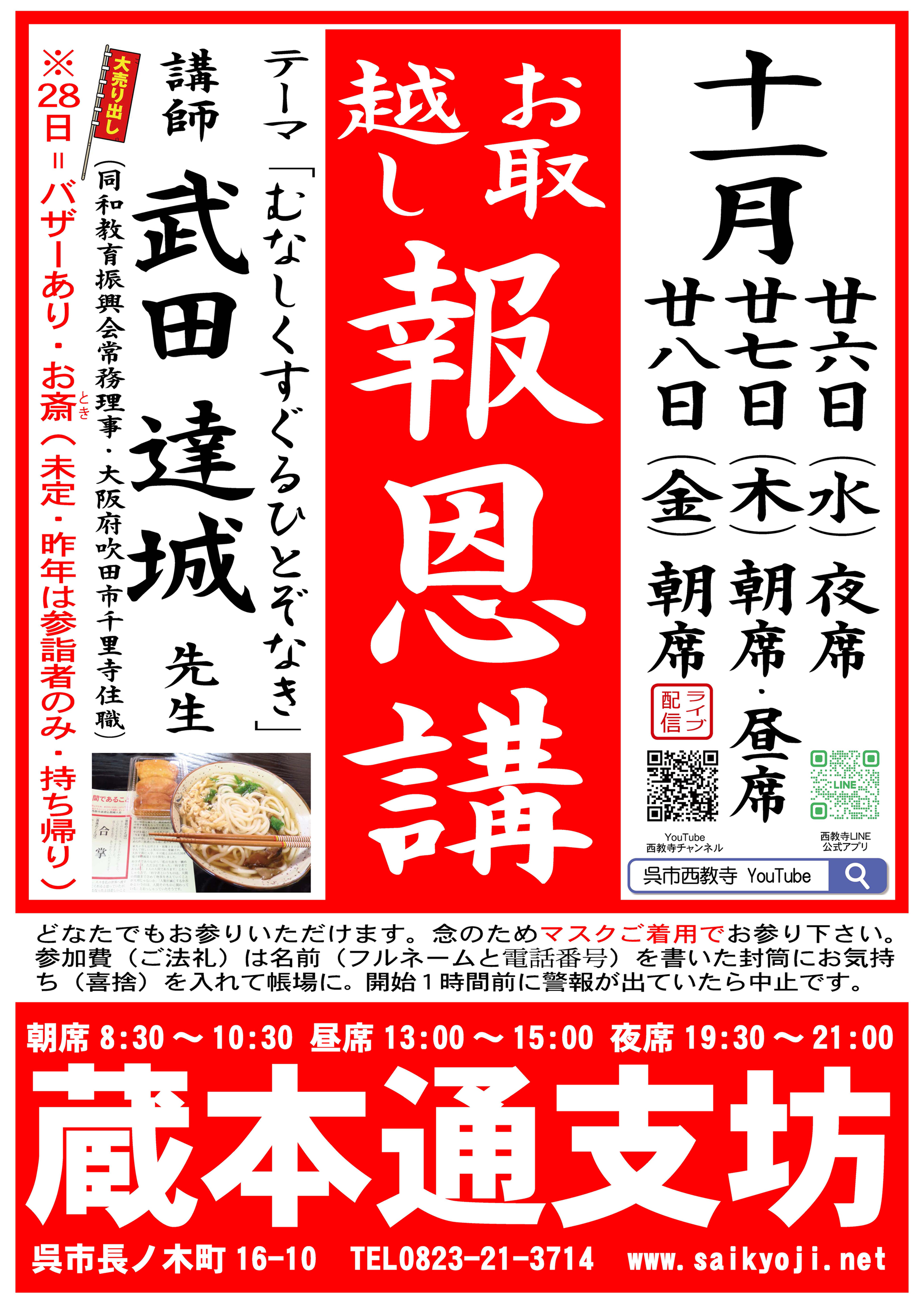 蔵本通支坊 お取越し報恩講 武田達城先生 |