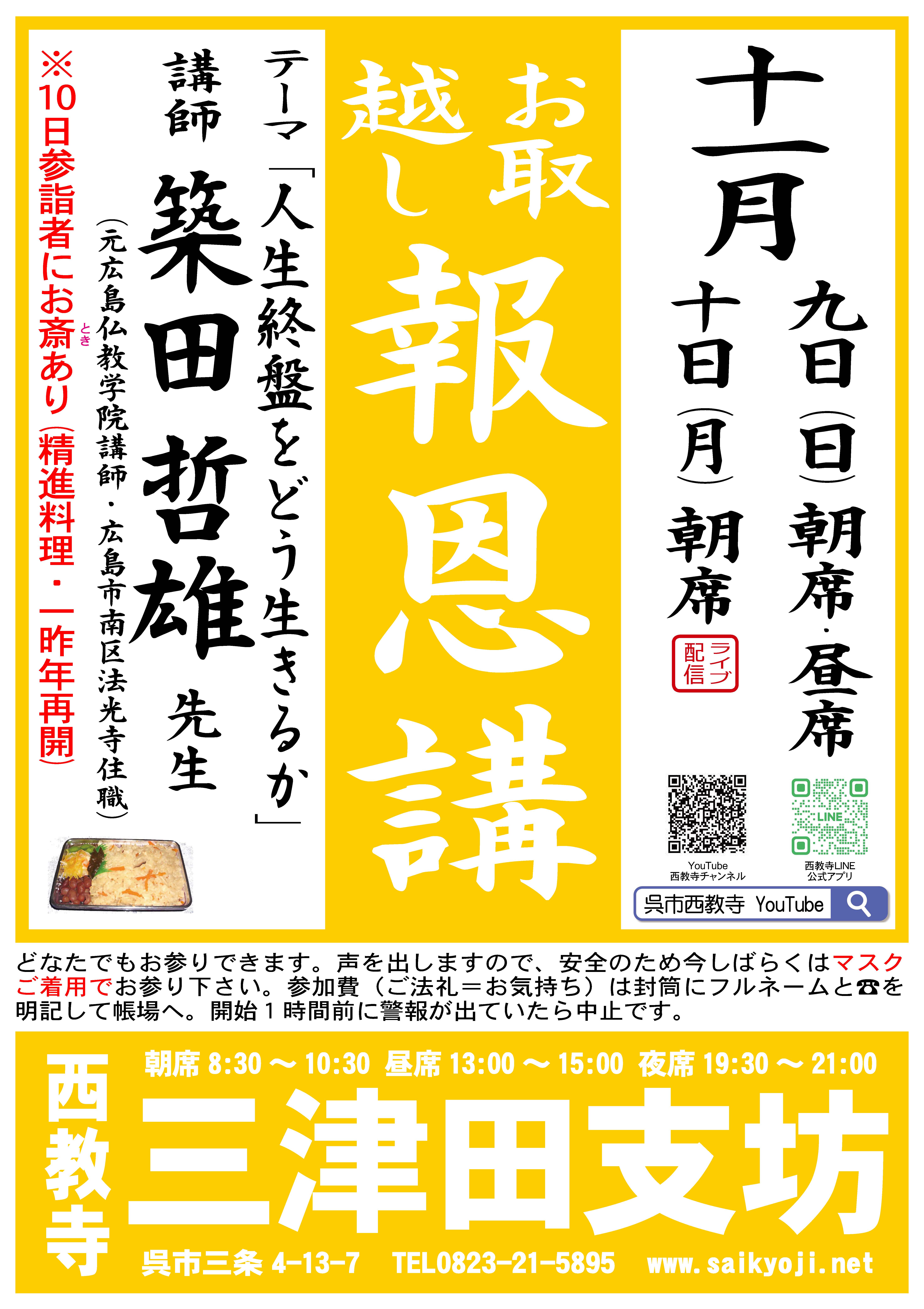 三津田支坊 お取越し報恩講 築田哲雄先生 |